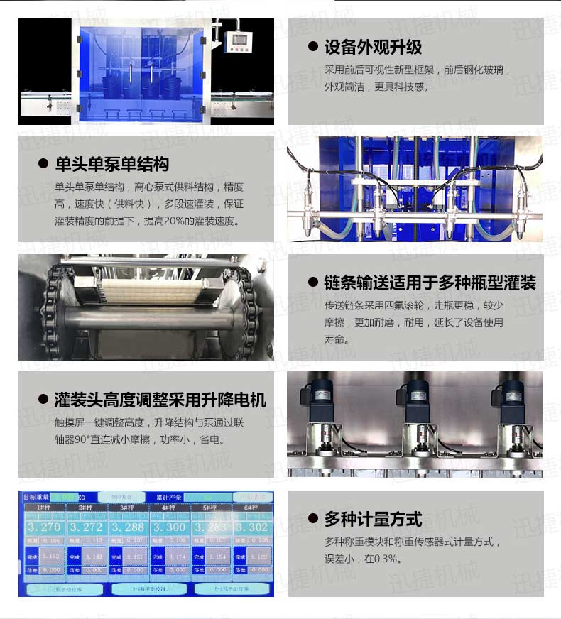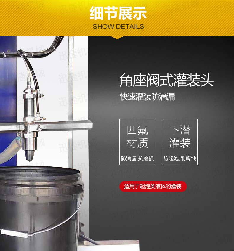 機油灌裝機適用于對4kg-25kg汽車用品類產品:潤滑油、防凍液、車用尿素等液體灌裝。自動完成計數進瓶、計重量灌裝、輸送出瓶等一系列操作。 特別適用于潤滑油、水劑、食用油的定量灌裝,是食品,醫藥,化妝品以及精細化工等行業的理想灌裝機。本機采用可編程控制器(PLC)、高速工控組態軟件進行實時監控的控制,使用調節方便。整機按GMP標準要求制作,各管路連接采用快裝方式,拆卸清洗方便,與物料接觸部位及外露部位均采用不銹鋼制造。整機安全、環保、安全、美觀、能適應各種不同環境工作。