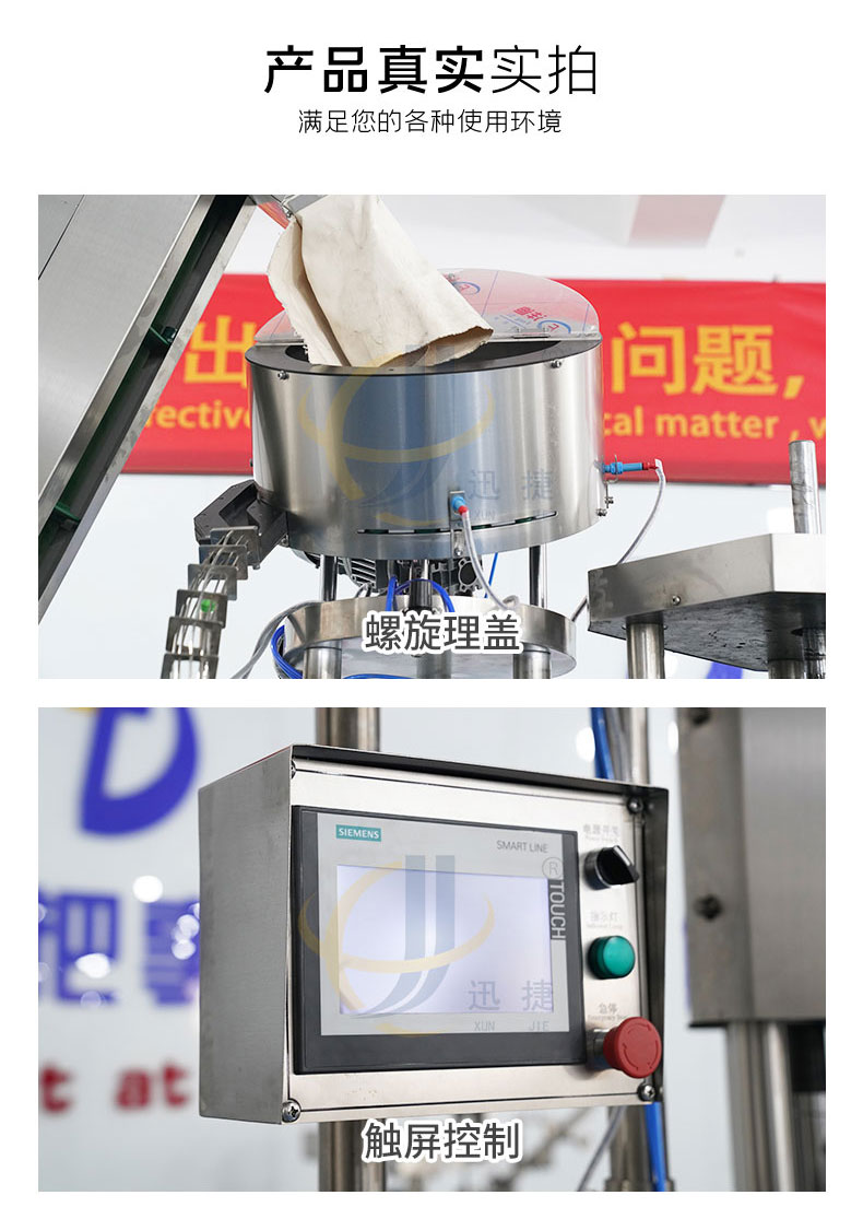 全自動四頭金屬鎖蓋機供鋁蓋酒瓶瓶封蓋用,整體采用304不銹鋼制作,運行穩定可靠。適用于50-100ml各類圓瓶、方瓶等瓶型旋蓋。